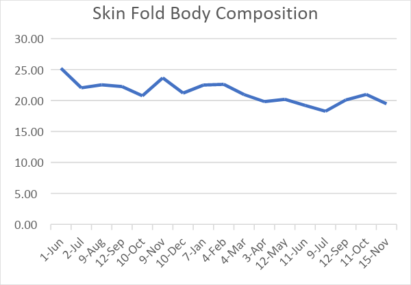 Over the course of the year, she slowly decreased her body fat percentage. Yes, she regained at times, but never past where she came from.