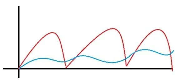 The blue line isn’t a big rise and still comes up and down. BUT there is a new perceived minimum standard for life. They don’t go back to the old lifestyle, thus their minimum isn’t none, it’s just enough.